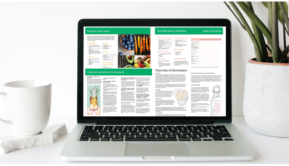 Use this 2 week cleanse for goal setting, sample meal plans, daily schedules, cleanse friendly recipes and more!